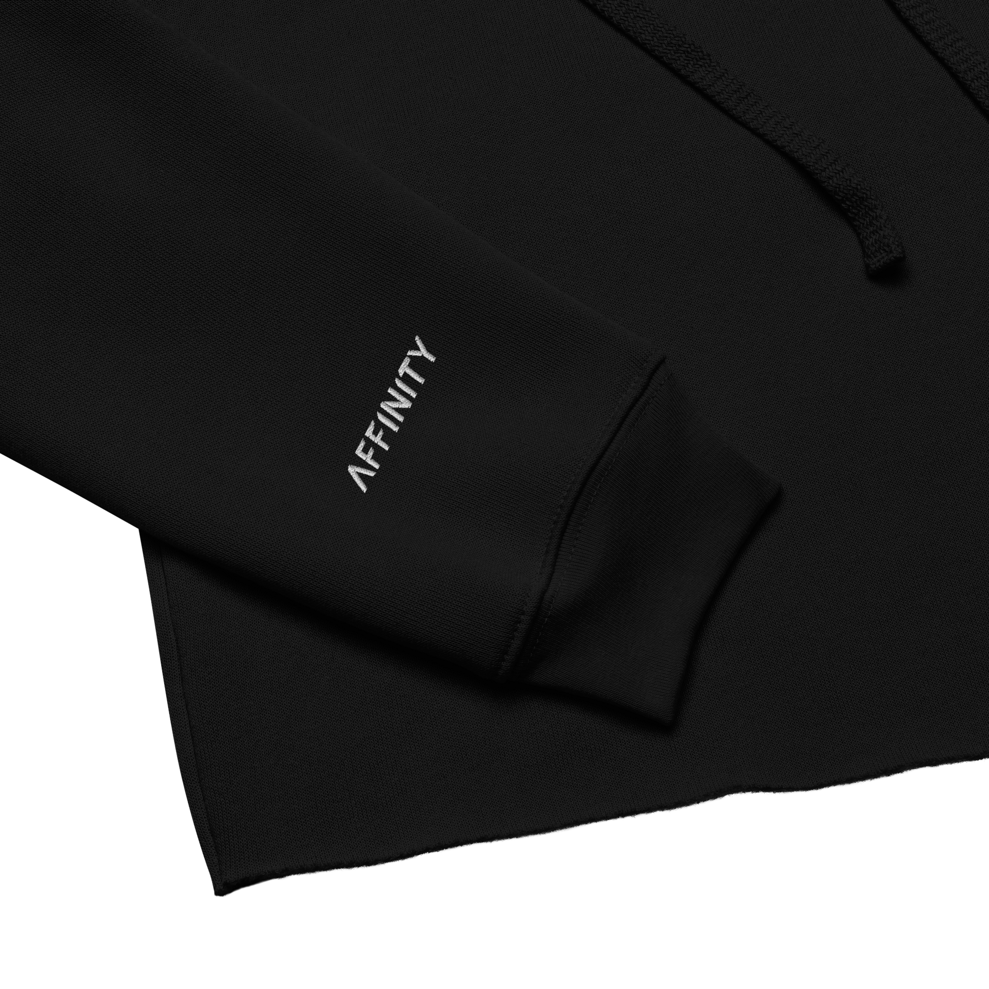 Bold and elevated. The Affinity Crop Hoodie features a large printed monogram across the front and a subtle embroidered lettermark on the right cuff. Cropped fit, soft fleece interior—made to stand out in comfort and style.